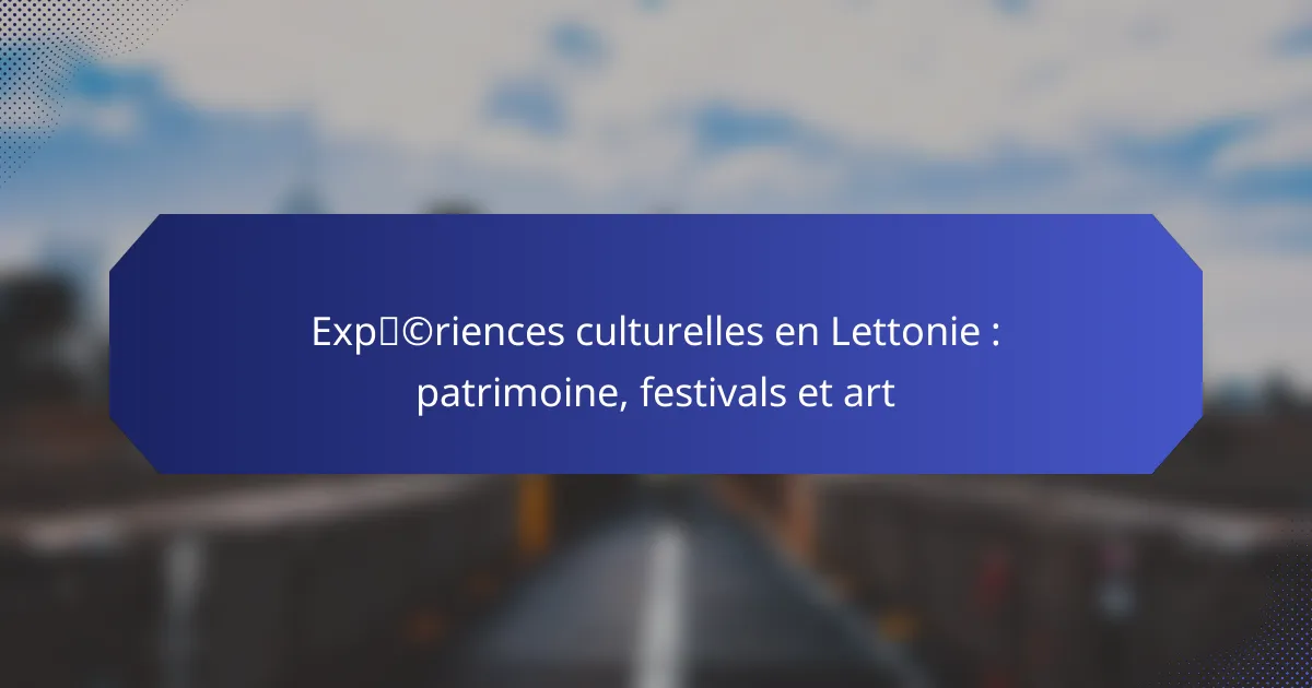 Découvrez la richesse des expériences culturelles en Lettonie à travers son patrimoine, ses festivals emblématiques et son art unique. Explorez le festival de la chanson et de la danse, qui célèbre les traditions folkloriques. Apprenez comment l’art letton, de la peinture à la musique, reflète l’identité nationale. Impliquez-vous dans des événements qui renforcent les liens communautaires et favorisent l’appréciation de la culture locale.